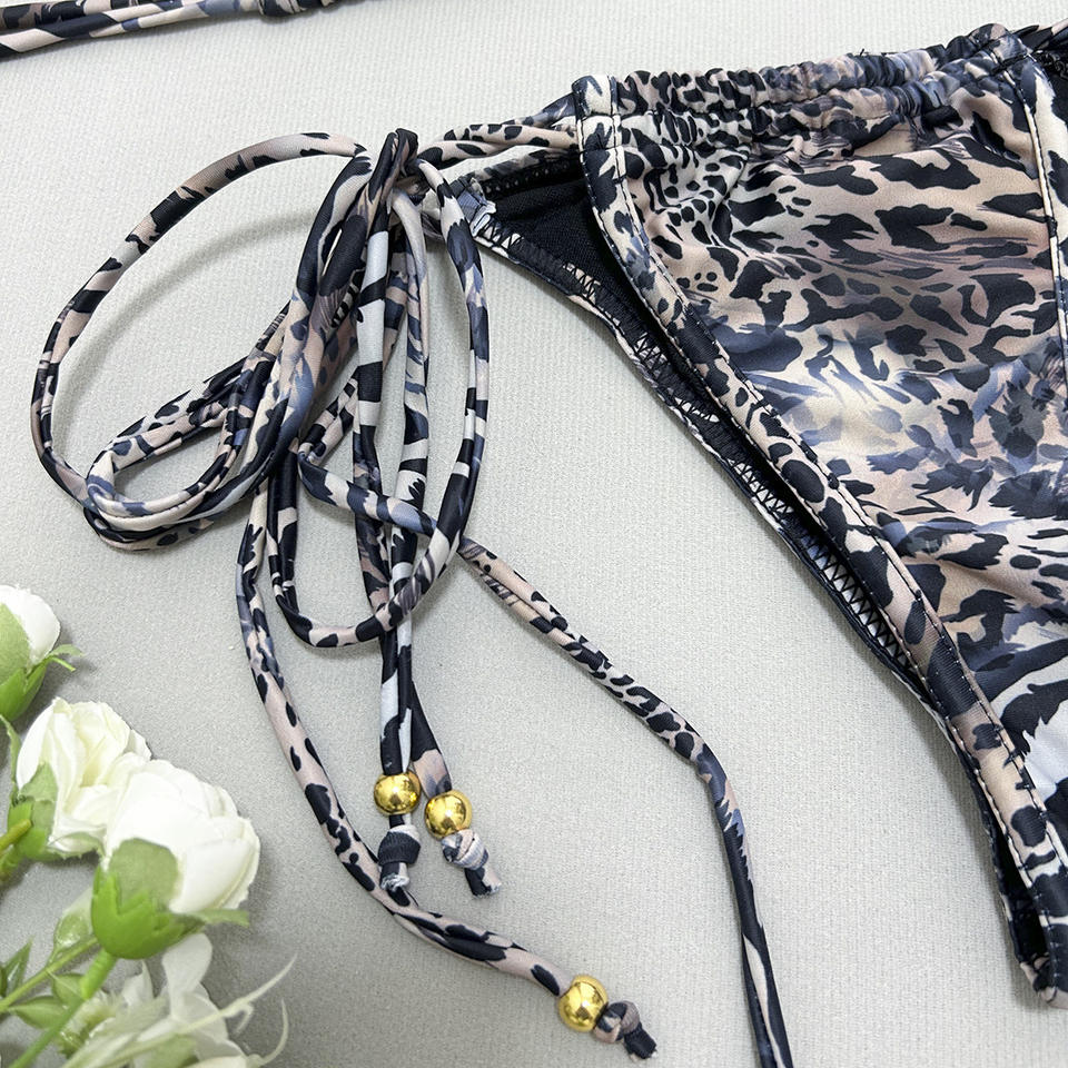 ชุดว่ายน้ำสองชิ้นสำหรับผู้หญิงชุดว่ายน้ำบิกินี่มิโรลายเสือเซ็กซี่
