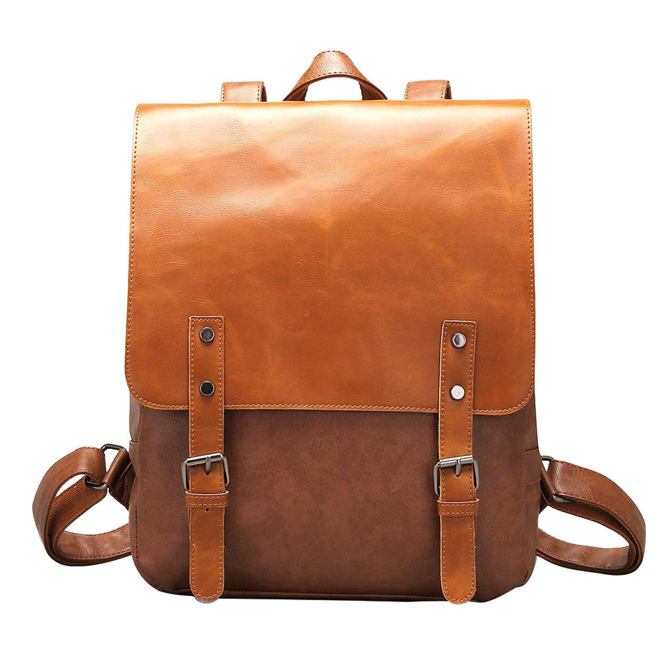 กระเป๋าเป้หนังแฟชั่นวินเทจสำหรับผู้ชายและผู้หญิงมีซิปปิดแผงสำหรับการเดินทางและใช้ในชีวิตประจำวัน