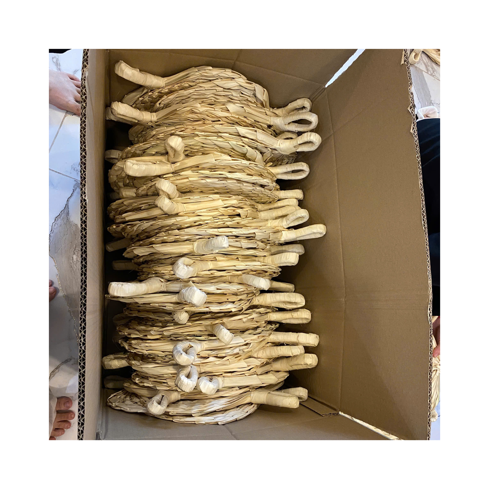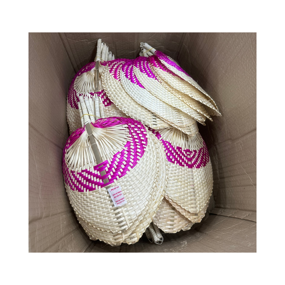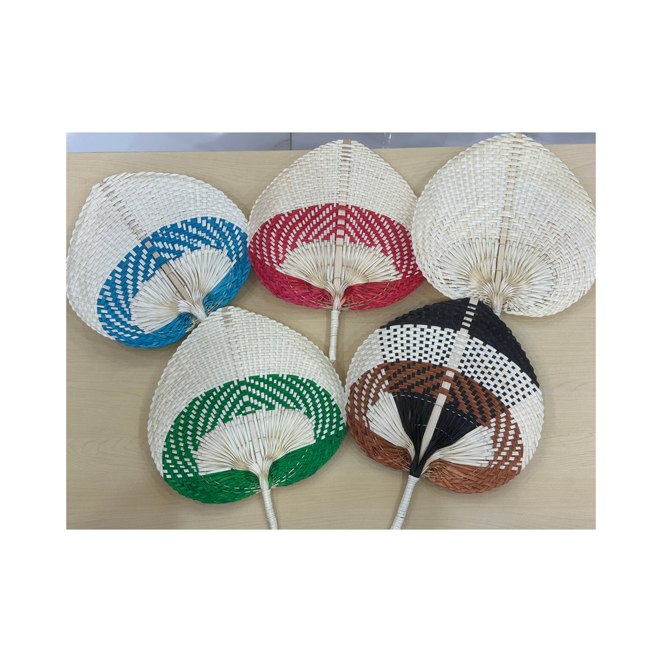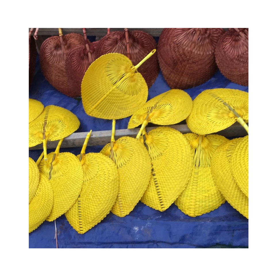 พัดด้วยมือไม้ไผ่ทนทานซี่โครงไม้ไผ่กับใบผ้าคอตตอนสำหรับตลาดกลางแจ้งและการแสดงทางวัฒนธรรมทำด้วยมือในเวียดนาม