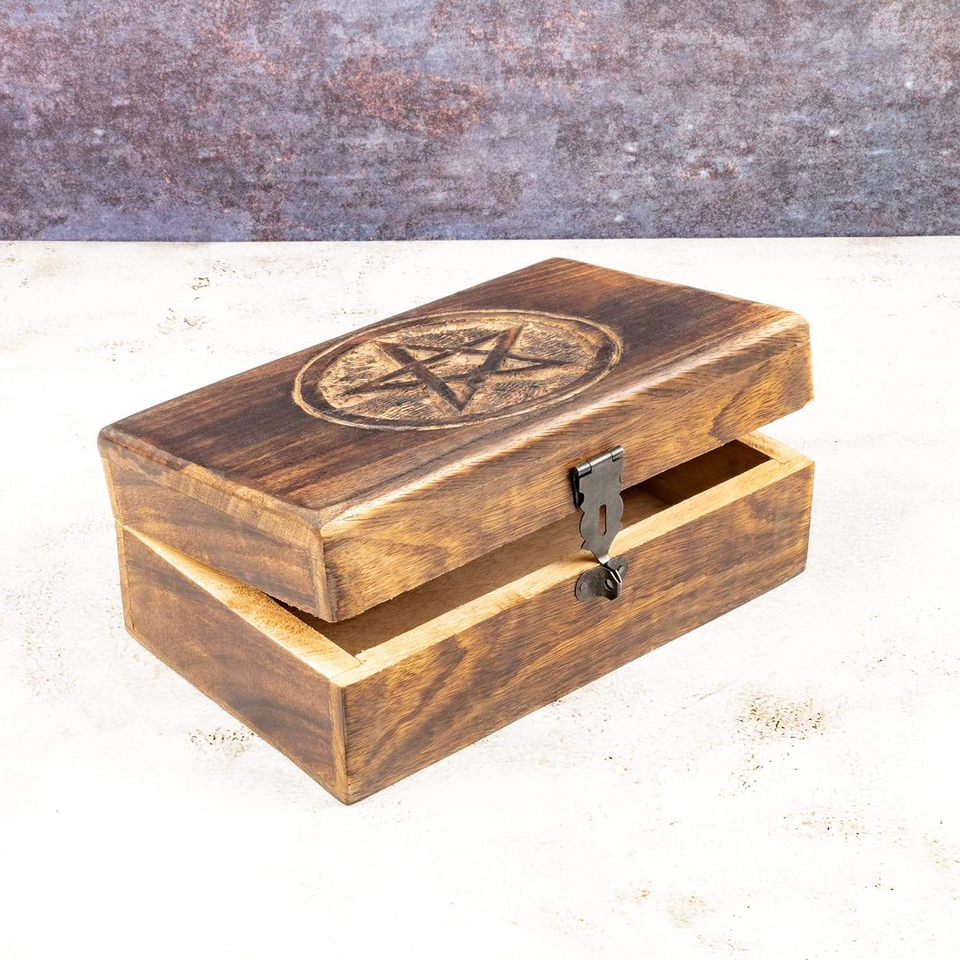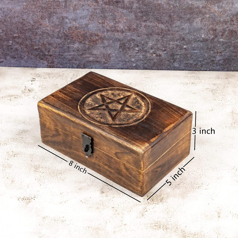กล่องเครื่องประดับไม้ทำมือ Barkah Star ตกแต่งด้วยงานแกะสลักลายเปลวไฟ สามารถกำหนดความจุได้ กล่องเก็บของตกแต่ง กล่องสมบัติ