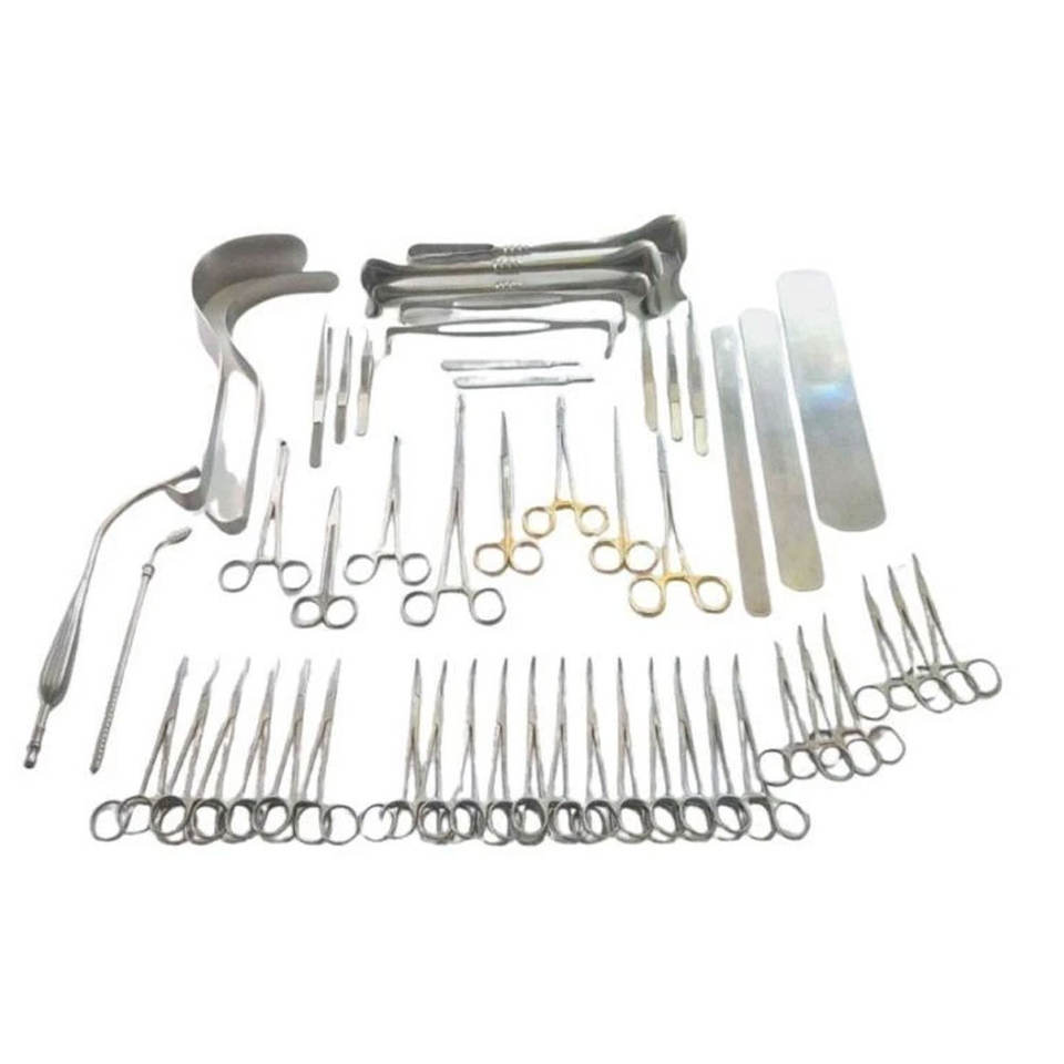 ชุดการผ่าตัด laparotomy พื้นฐาน104ชิ้นเครื่องมือทางการแพทย์ชุดผ่าตัดช่องท้องสีทองสแตนเลสคุณภาพเยอรมัน