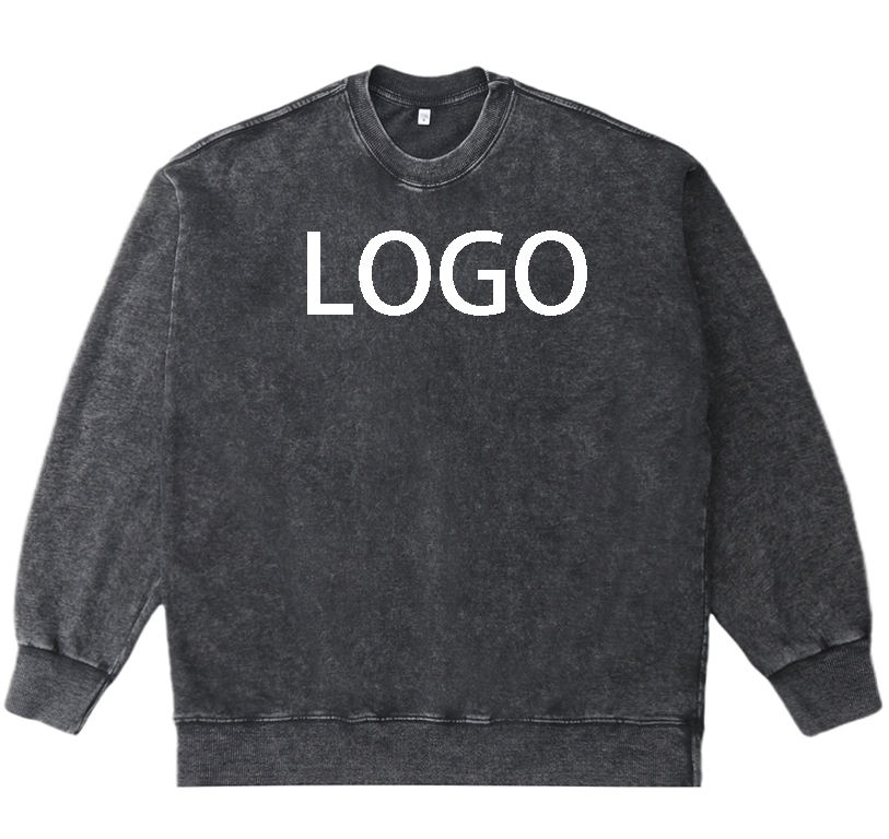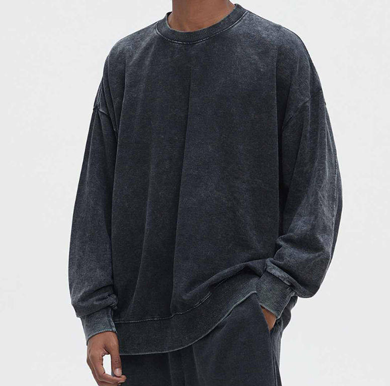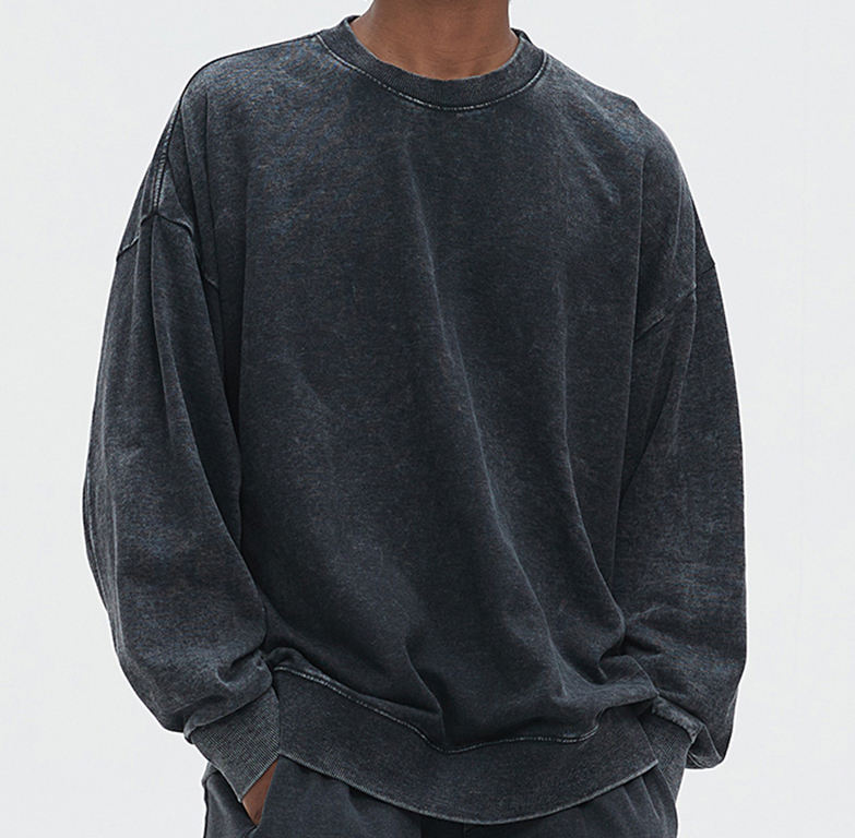 เสื้อสเวตเตอร์คอลูกเรือผ้าฝ้ายผสมแบบสวมหัวหัวล้างด้วยกรดฝรั่งเศสผ้าคอตตอน
