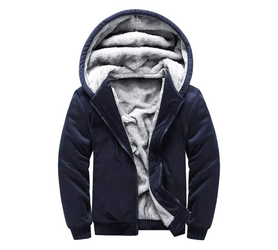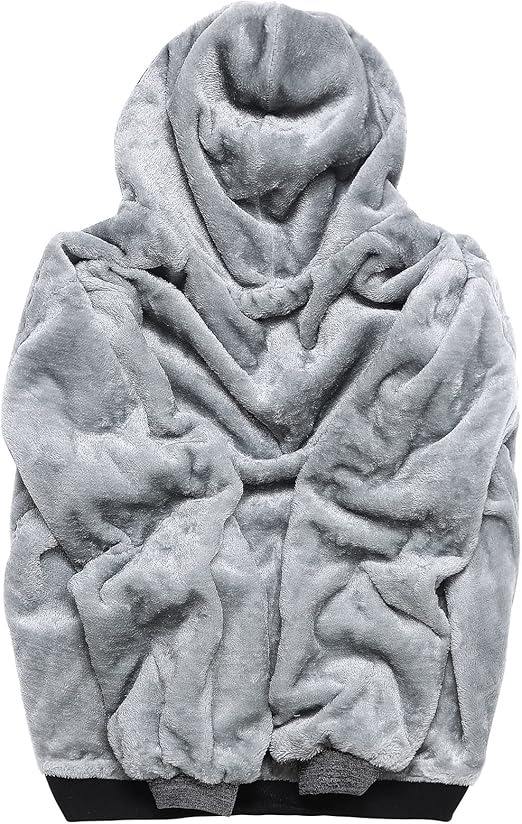เสื้อมีฮู้ดแบบซิปมีซิปสำหรับผู้ชายผ้าฝ้ายสีพื้นผ้าคอตตอนไซส์ใหญ่พิเศษ