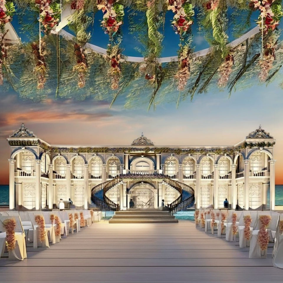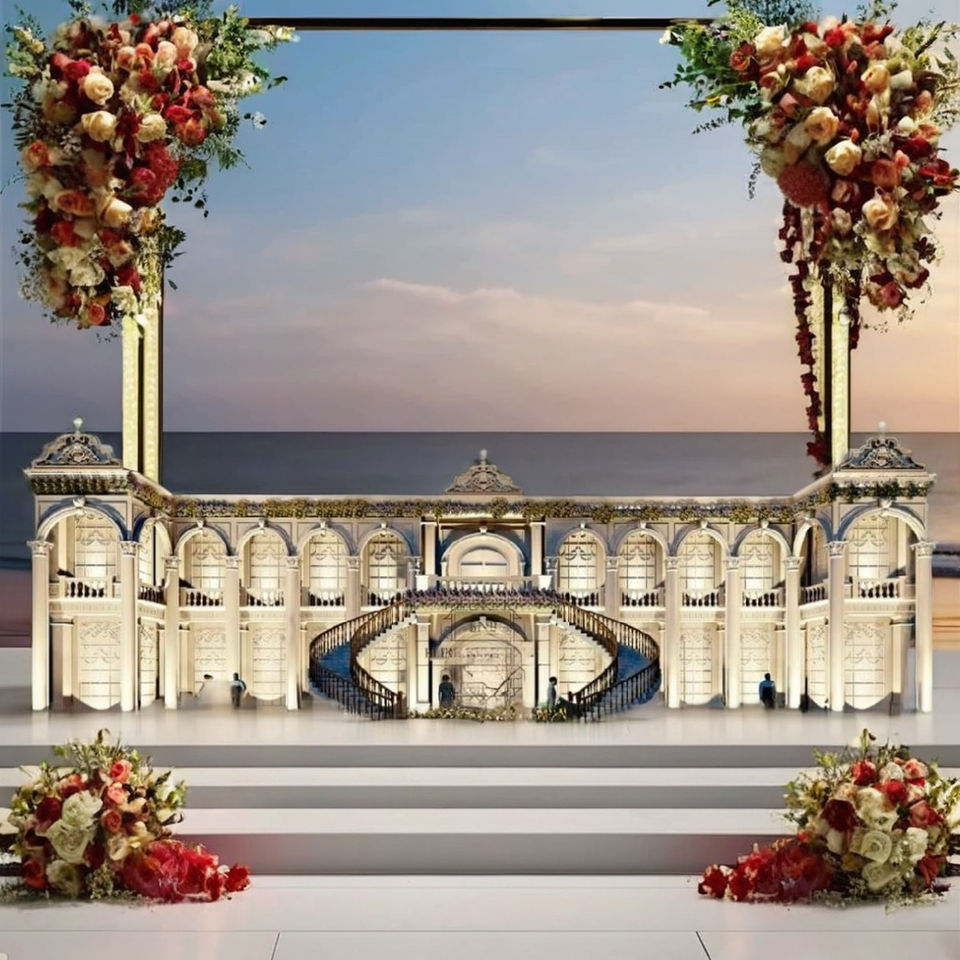 การตั้งค่า mandap ไฟเบอร์ชายหาด/seachside Wedding ไฟเบอร์ mandap/ธีมมหาสมุทรไฟเบอร์ mandap การตกแต่งชายหาด110X26ฟุต