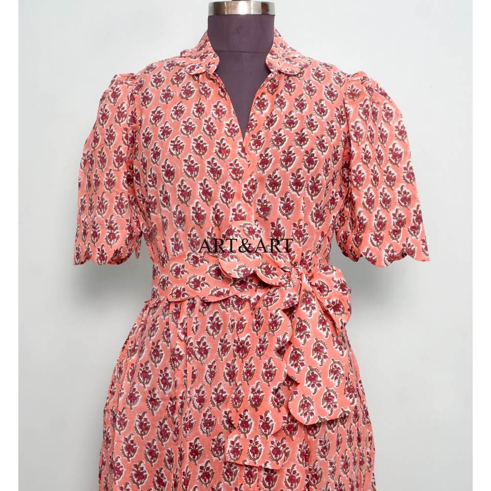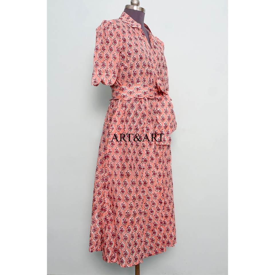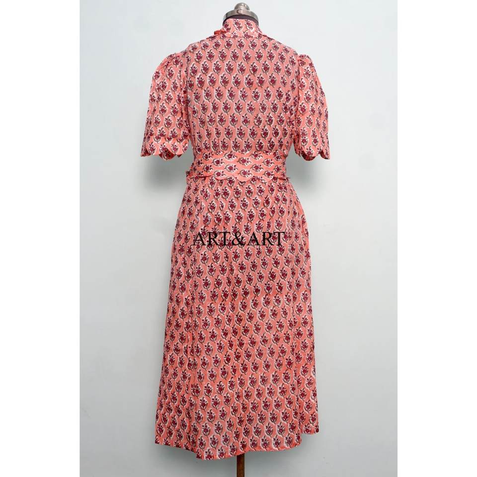 เดรสผ้าฝ้ายพิมพ์ลายดอกไม้สวยงามน่ารัก สไตล์ลำลอง ใส่ได้ทุกวันหรือไปงานปาร์ตี้ เอวธรรมชาติ ทรงคังกูร่า ความยาวปานกลางสำหรับผู้หญิง