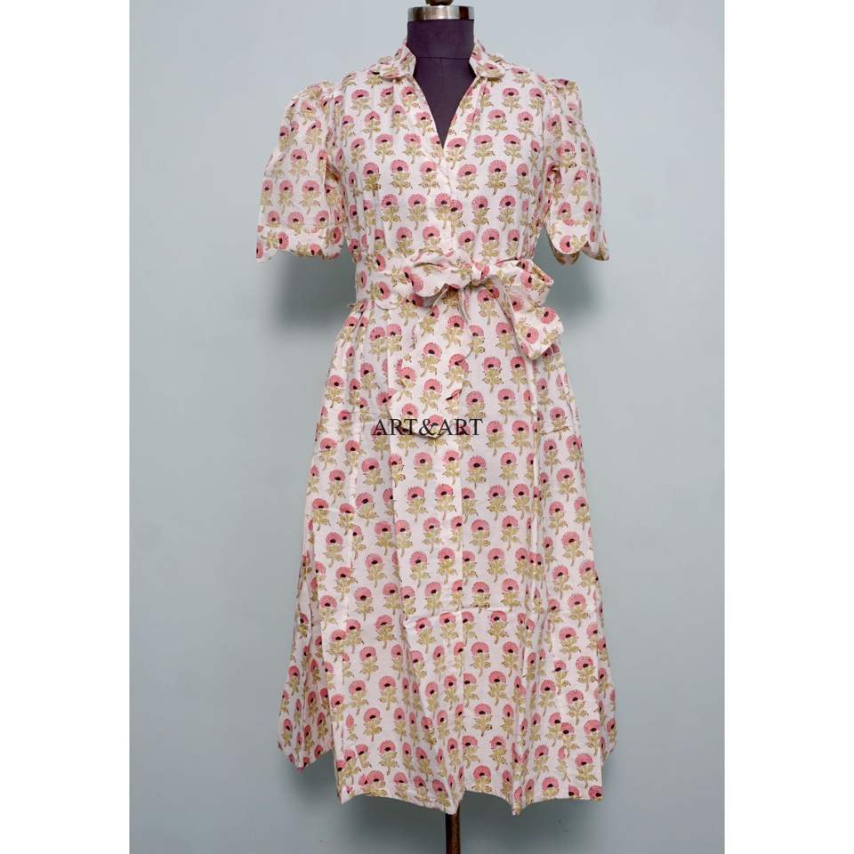 ชุดเดรสแม็กซี่ผ้าฝ้ายพิมพ์ลายดอกไม้ดิจิทัลแบบแฮนด์บล็อก สวยงามและสวมใส่สบาย เหมาะสำหรับผู้หญิง สวมใส่สบายๆ ในชีวิตประจำวันหรือไปงานปาร์ตี้