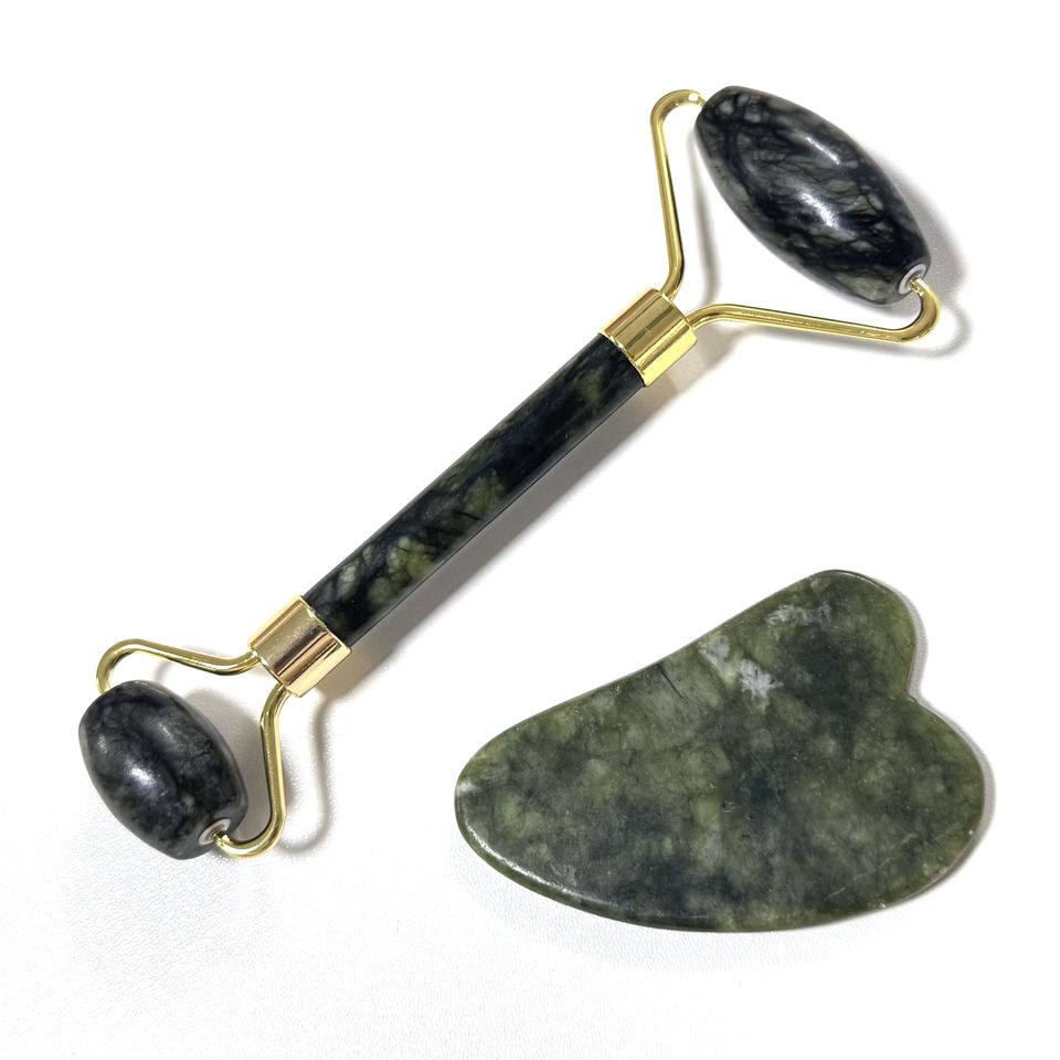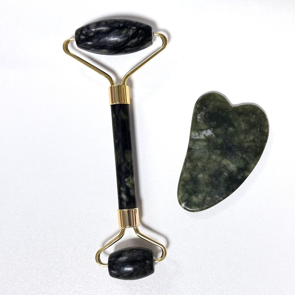 ชื่อผลิตภัณฑ์:เซ็ตหยกลูกกลิ้งและกัวซาสีเขียวเป็นของขวัญโปรโมชั่นความงาม