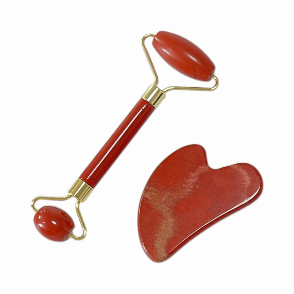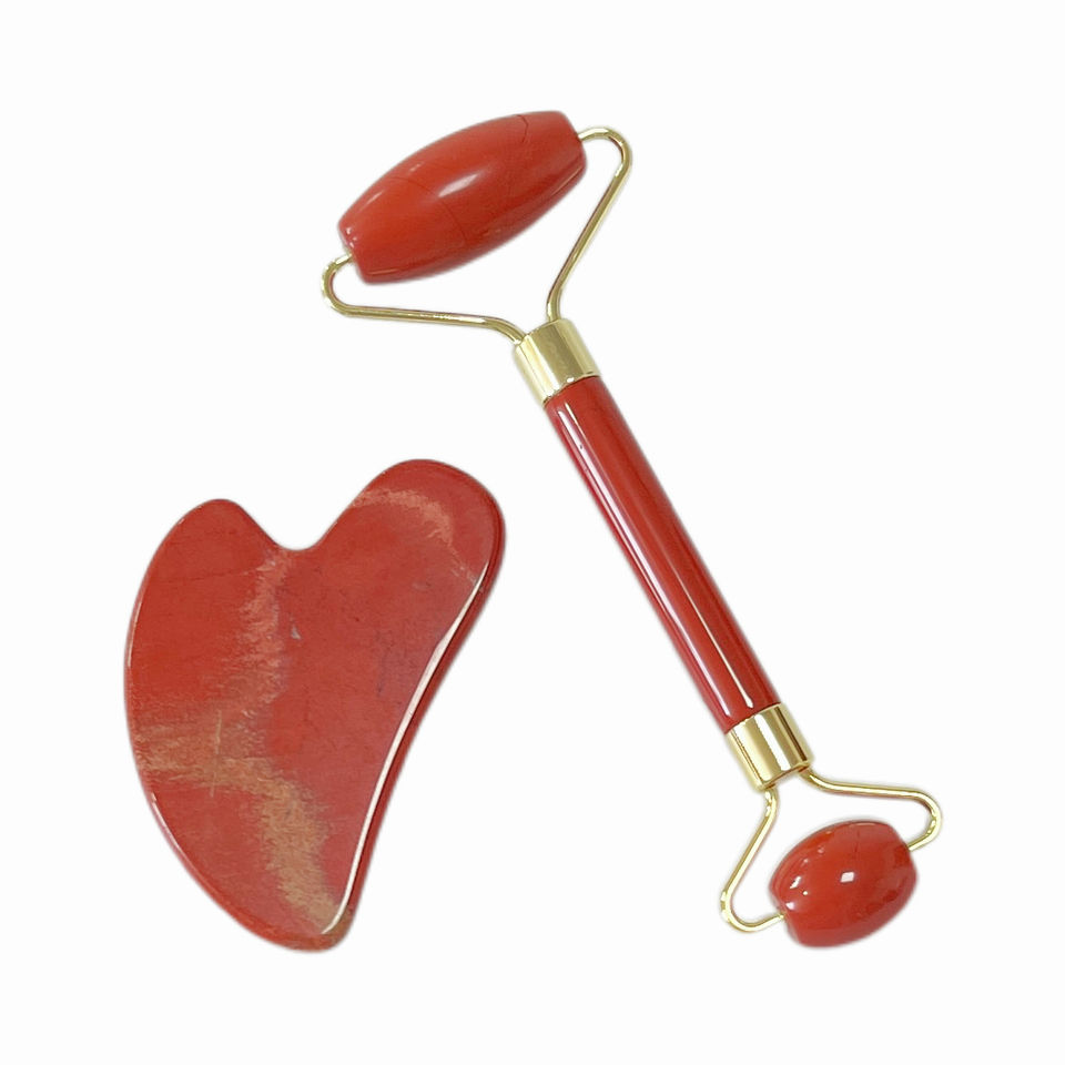 ชุดของขวัญชุดลูกกลิ้งนวดหน้าแจสเปอร์หินธรรมชาติสีแดง