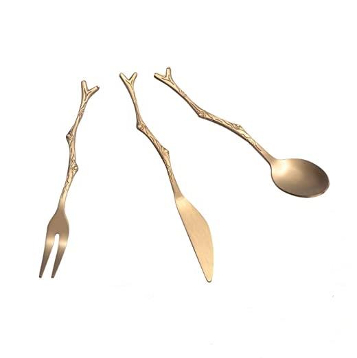 ชุดช้อนส้อมและช้อนส้อมพร้อมช้อนส้อมชุบทอง,ดีไซน์ส้อมขนนกและช้อนส่วนบุคคลปลอดภัยและดีต่อสุขภาพ
