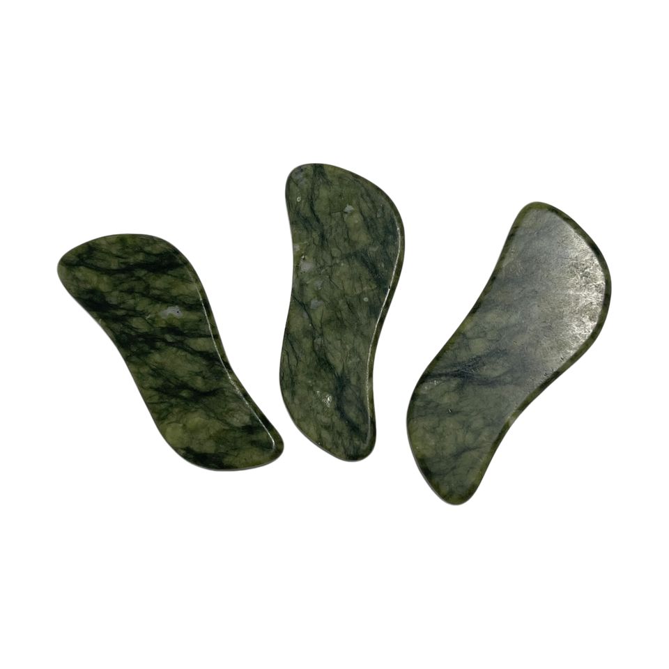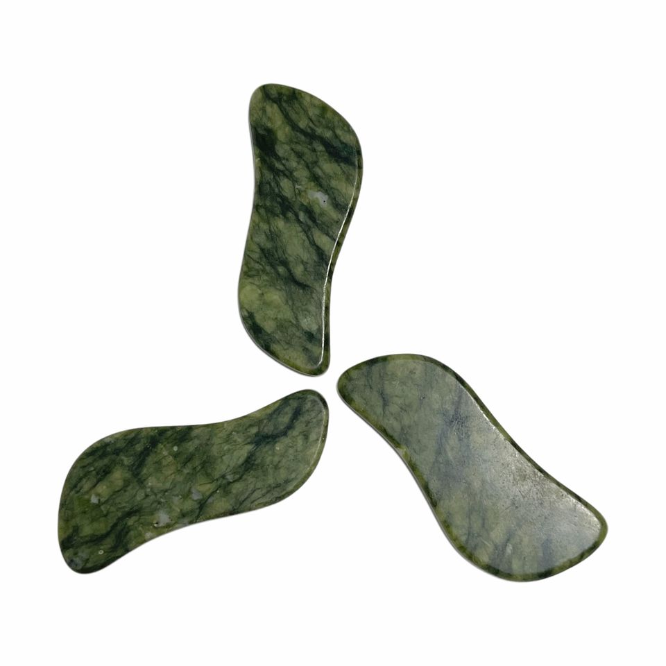 Product Name:wholesale price natural green jade S shaped xiuyan stone guasha tool