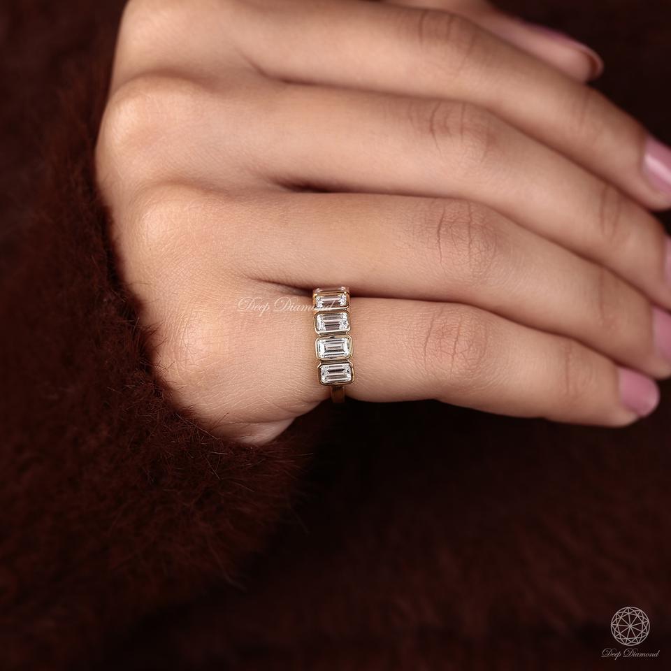 Product name:Emerald Cut 14K Gold Half Eternity wedding band