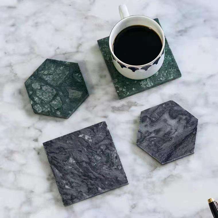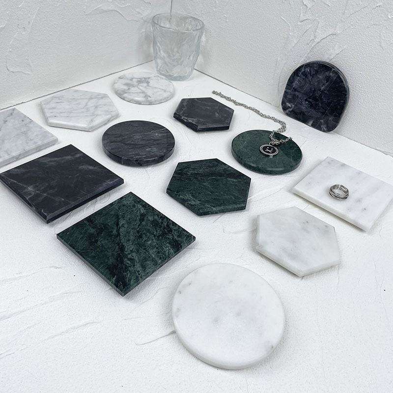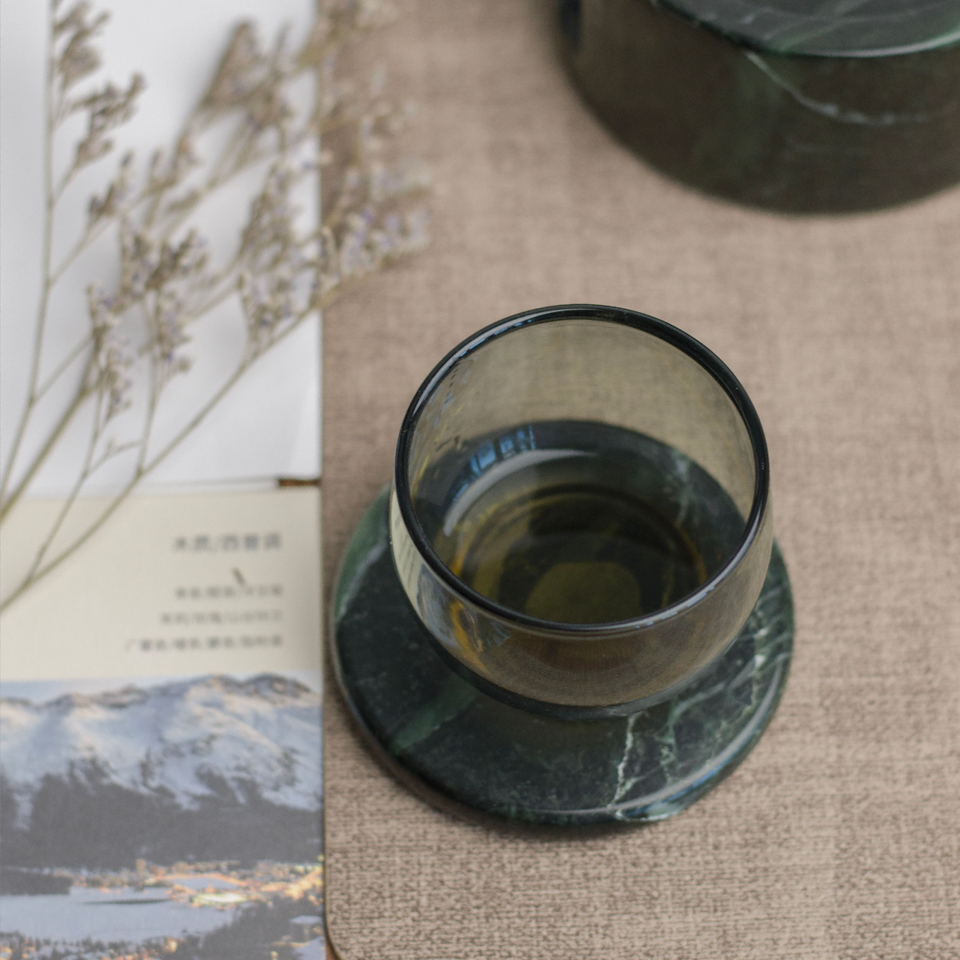 ที่รองแก้วหินอ่อนสีดำพร้อมที่จับ
