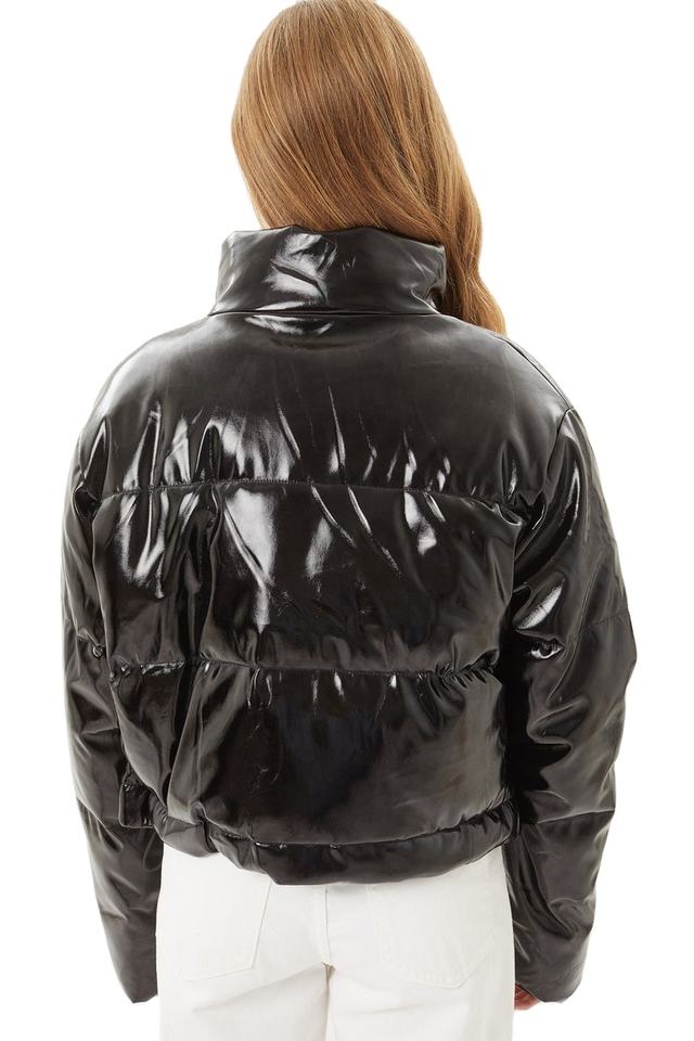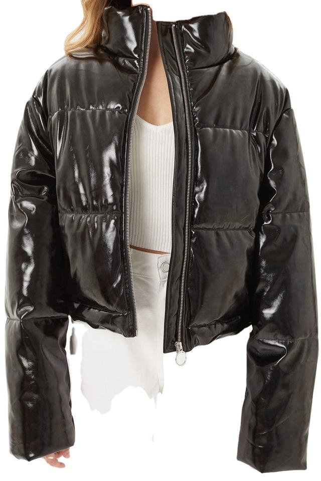 แจ็กเก็ตตัวสั้นทรงโอเวอร์ไซส์สีดำสำหรับผู้หญิงเสื้อครอปแบบพองลำลองสำหรับ2026