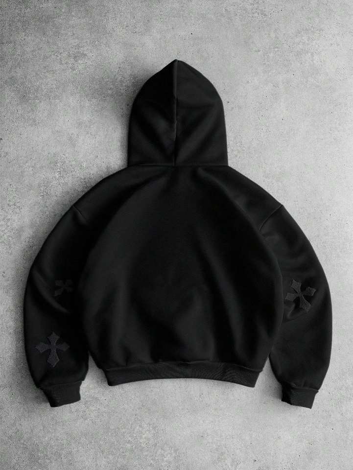 black embossed women oversized hoodie casual soft fleece pullover sweatshirt daily wear winter fashion top