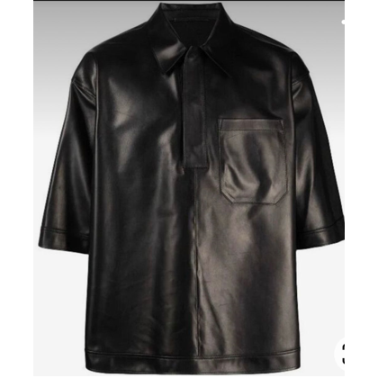 เสื้อหนังสีดำ เสื้อหนังเทียม เสื้อหนังผู้ชายทรงโอเวอร์ไซส์ เสื้อหนังยูนิเซ็กซ์ เสื้อหนังแขนครึ่งตัว เสื้อหนังสตรีทแวร์