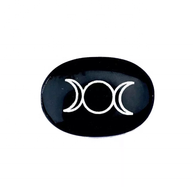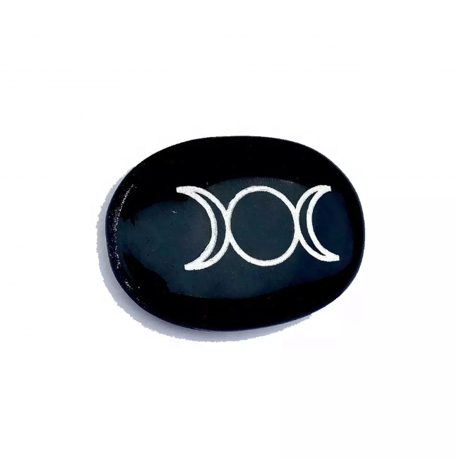 หินธรรมชาติทัวร์มาลีนสามพระจันทร์สีดำพลอยหินธรรมชาติหินกรวดแกะสลักปาล์มอาเกตคริสตัล