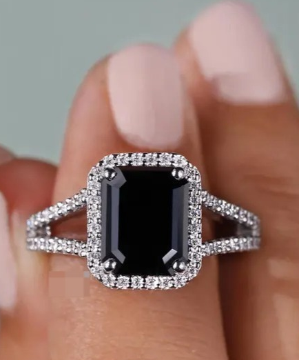 แหวนเพชรโมอิสซาไนต์สีดำและสีขาว รูปทรงแฟนซี ของขวัญสำหรับเขา/เธอ