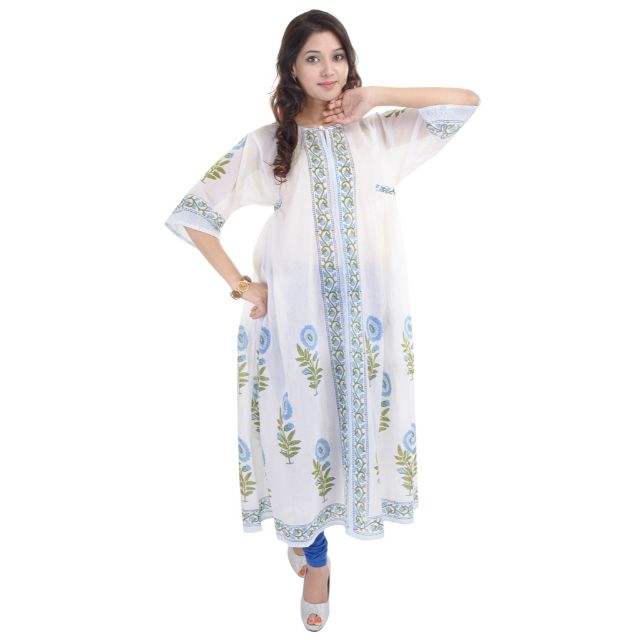 เดรสผ้าฝ้ายลำลองพิมพ์ลายบล็อก ไซส์พลัส งานแฮนด์เมด พิมพ์ลายดอกไม้ เอวธรรมชาติ รับสั่งซื้อขายส่ง