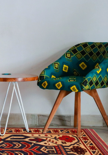 พรมขนสัตว์คุณภาพสูงสีน้ำเงิน งานปักลายแบบโมเดิร์น งานแฮนด์เมด ลายปักแบบโอชัค สำหรับห้องนั่งเล่นและห้องนอน