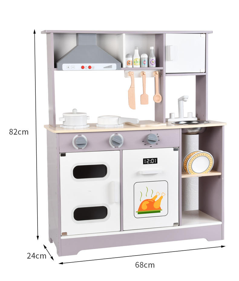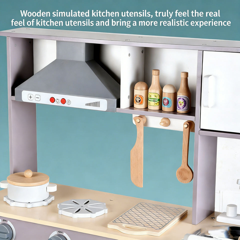 ชุดของเล่นครัวไม้สำหรับเด็กก่อนวัยเรียน สีฟ้า ขายส่ง พร้อมเครื่องจำลองเชฟ เตาแก๊ส และเตาไฟฟ้า