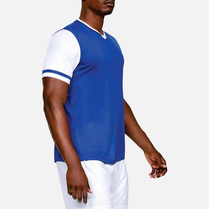เสื้อฟุตบอลแขนสั้นใส่ได้ทั้งชายและหญิงผ้าโพลีเอสเตอร์สีพื้นจำนวนจำกัดสีฟ้า