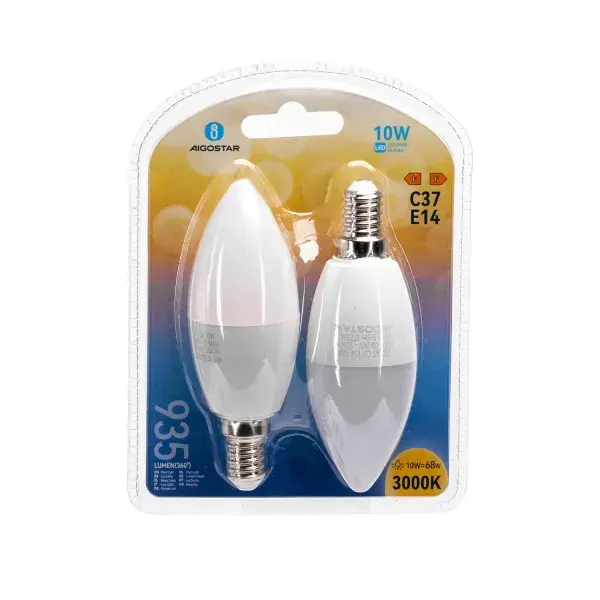 หลอดไฟ LED รุ่น C37 ขั้ว E14 10 วัตต์, 2 ชิ้น, ประหยัดพลังงาน เหมาะสำหรับการใช้งานในบ้านและการตกแต่ง
