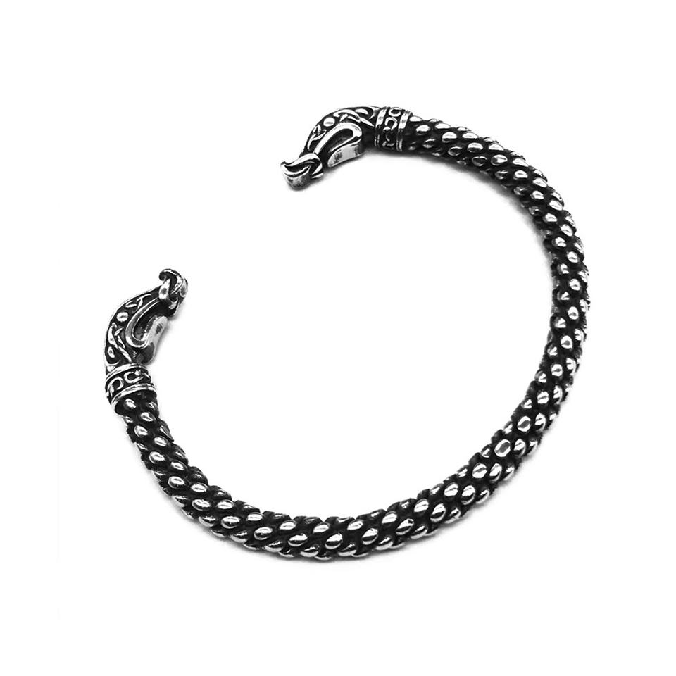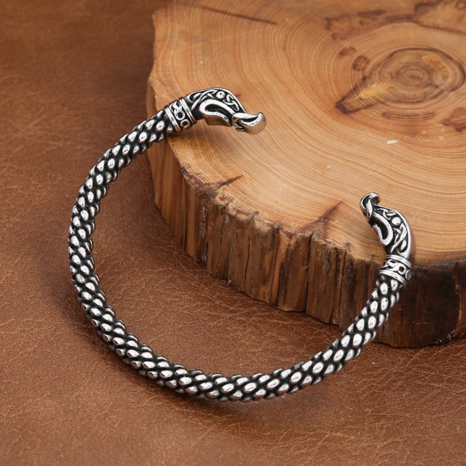 สร้อยข้อมือสแตนเลสสตีล ลายหัวมังกร สร้อยข้อมือสไตล์ไวกิ้งสำหรับผู้ชาย แข็งแรง ทนทาน ย้อนยุค คุณภาพสูง เครื่องประดับโลหะหนักสไตล์วินเทจ