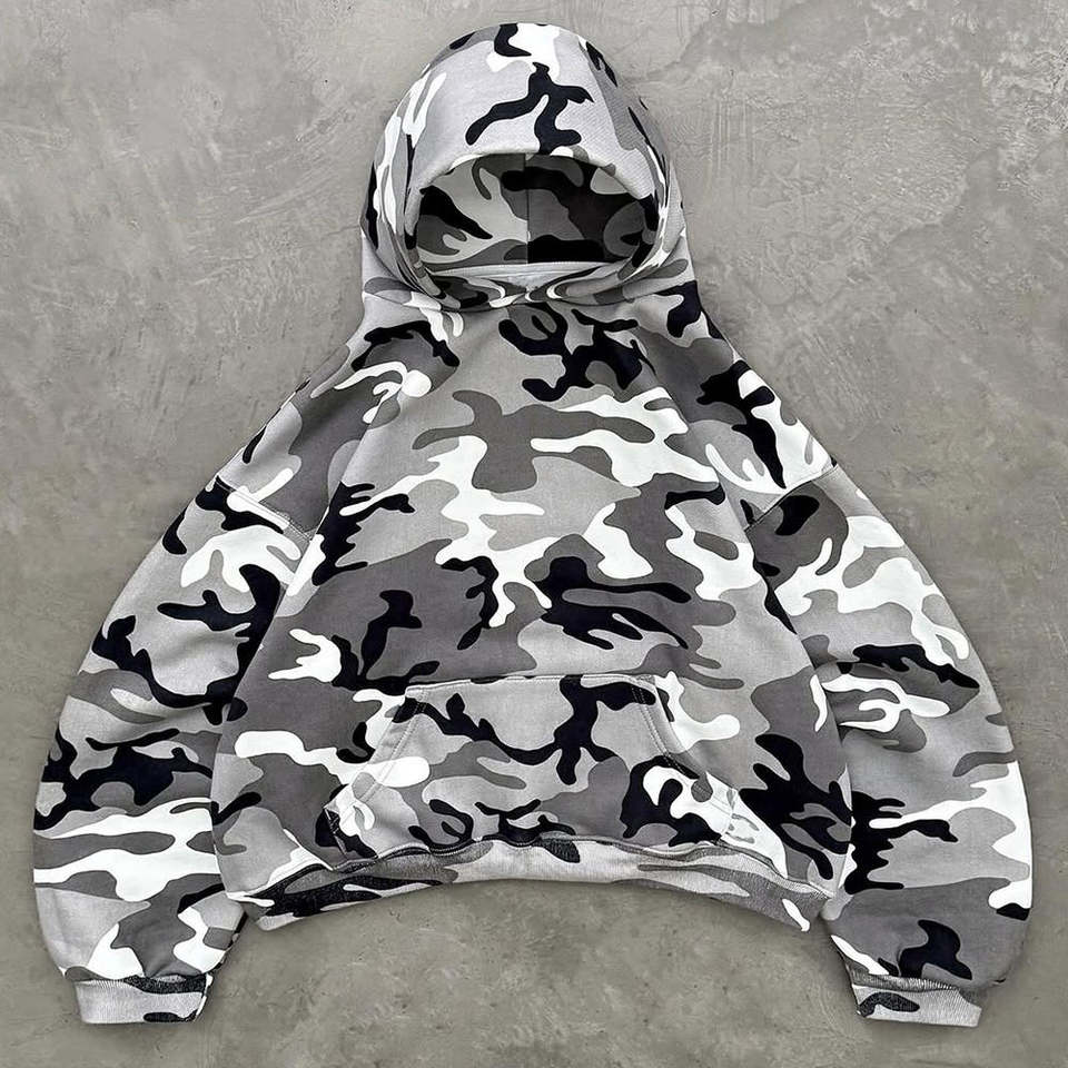 เสื้อฮู้ดผ้าฝ้ายระบายอากาศทรงครอปโอเวอร์ไซส์พร้อมกางเกงพิมพ์ลายชุดวอร์มซ้อนกันสองชิ้นออกแบบได้ตามต้องการ