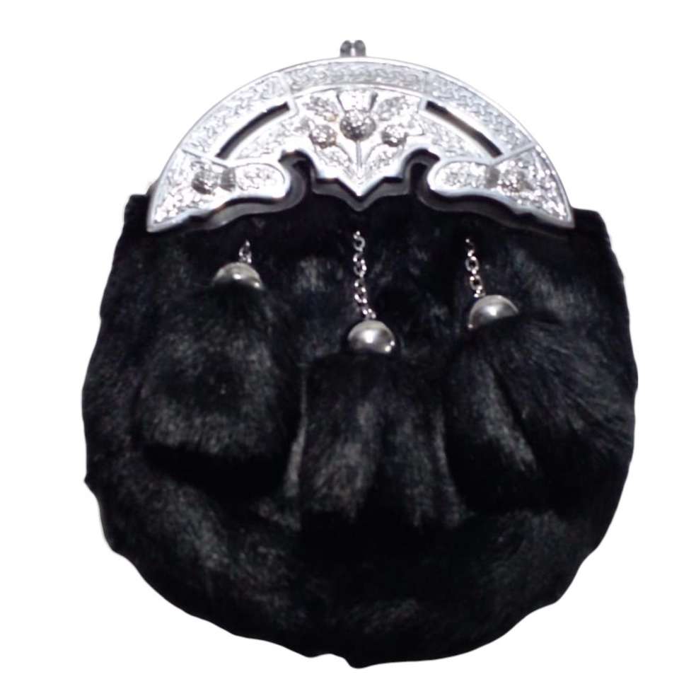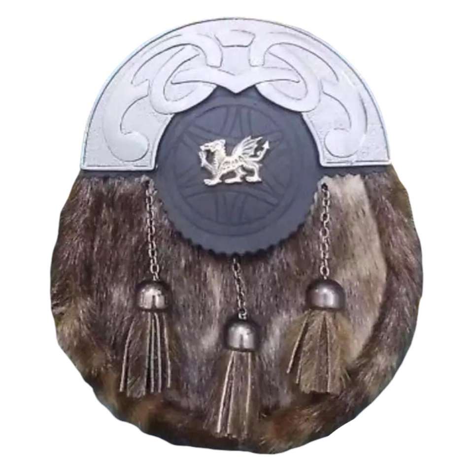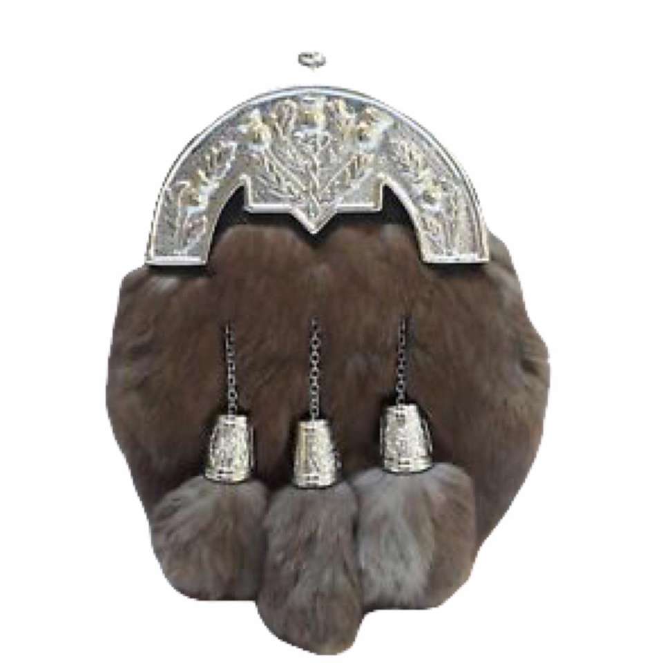 เครื่องประดับศีรษะสก็อตแบบเต็มตัวทำจากขนกระต่ายสีน้ำตาล พร้อมห่วงโลหะโบราณลายดอกธิสเทล และพู่ขนสัตว์สามอัน