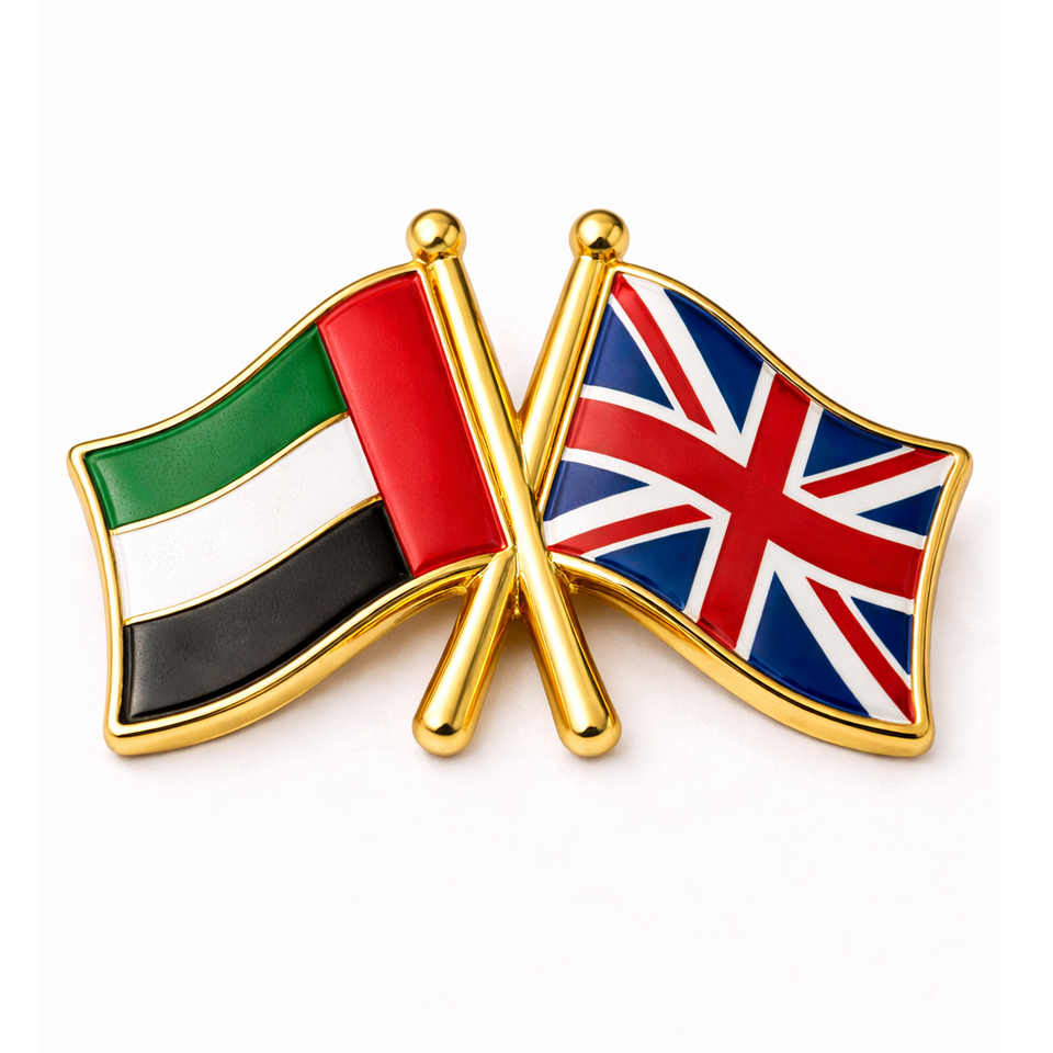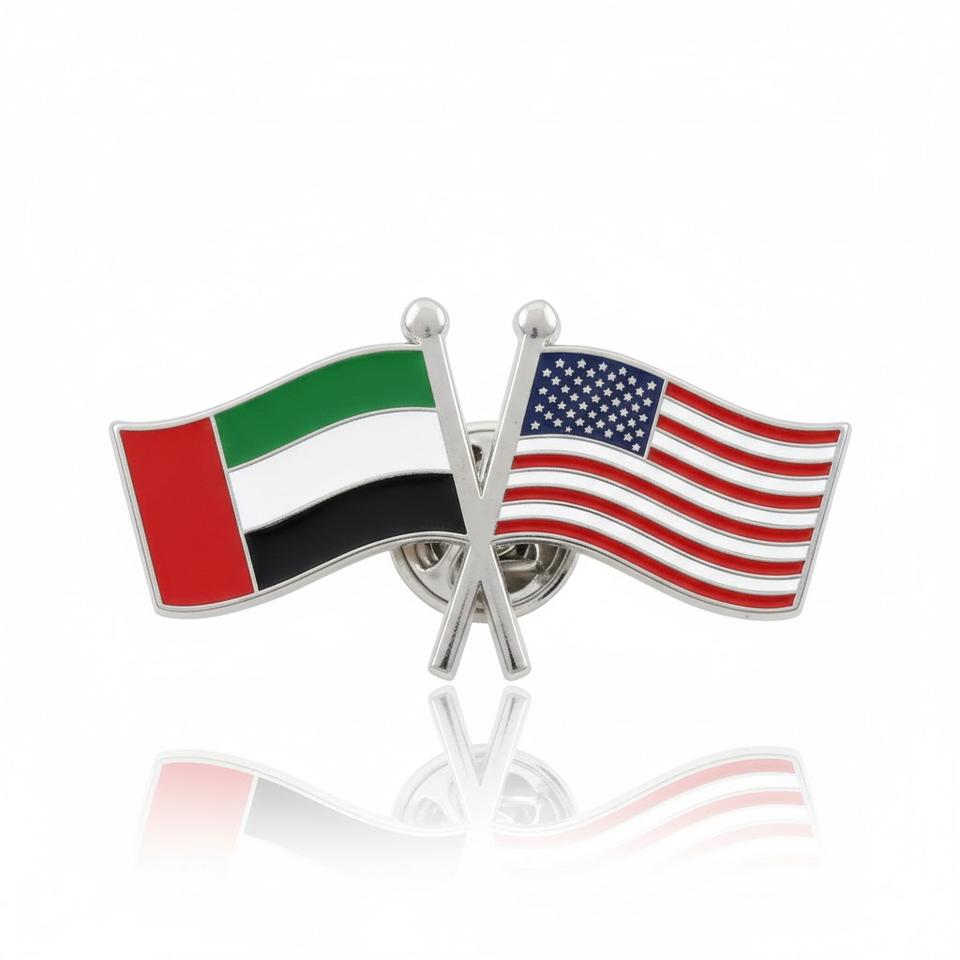 ธงมิตรภาพ UAE แบบกำหนดเอง ผลิตจำนวนมาก สำหรับ OEM พิมพ์ลายสกรีนด้วยผ้าไหมแบบดั้งเดิม ลงบนทองเหลืองเคลือบเงา