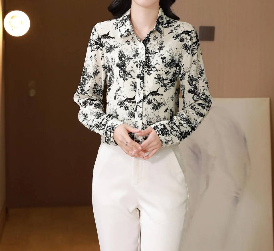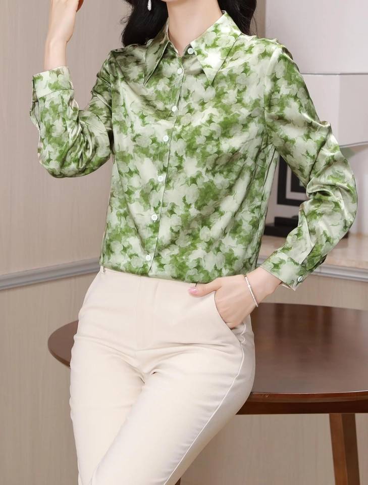 เสื้อคอปกแบบเปิดลงของผู้หญิงเสื้อเชิ๊ตผู้หญิงแบบลำลองมีสไตล์