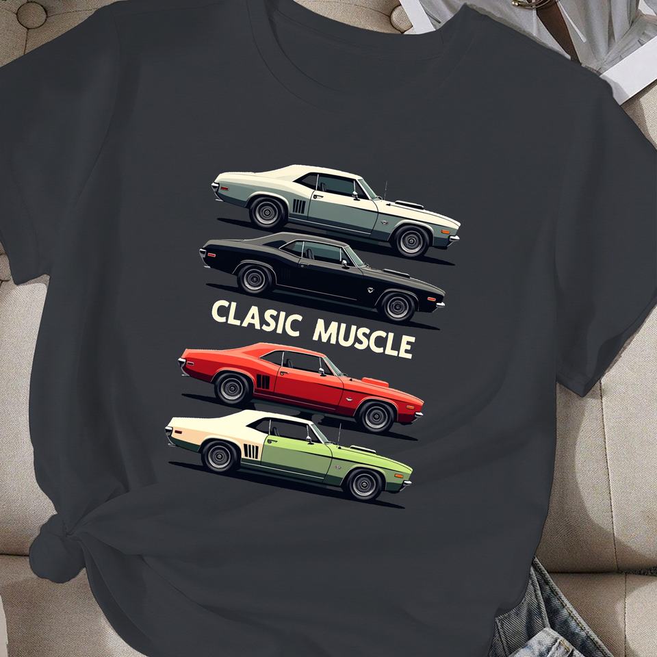 เสื้อยืดผู้หญิงคลาสสิกลายรถกล้ามเนื้อ