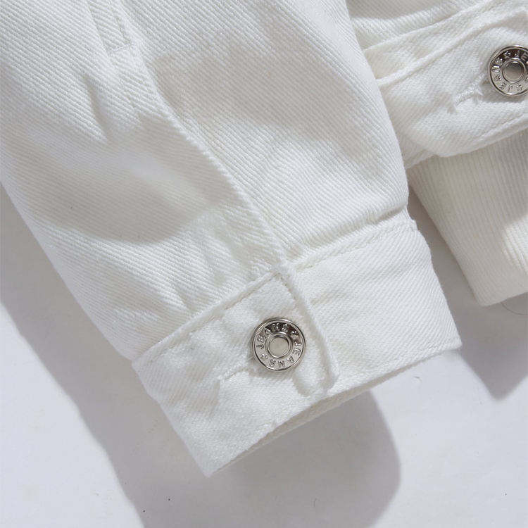 แจ็คเก็ตยีนส์เคลือบผิวทรงสลิมฟิตแฟชั่นลำลองทันสมัยไซส์ใหญ่ทนทานคุณภาพสูงสั่งทำโลโก้ด้านหน้าสำหรับผู้ชายขายส่ง