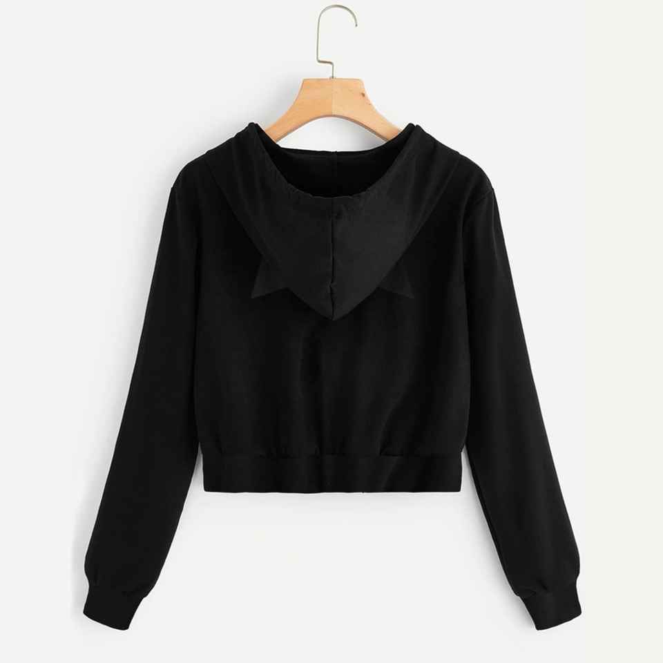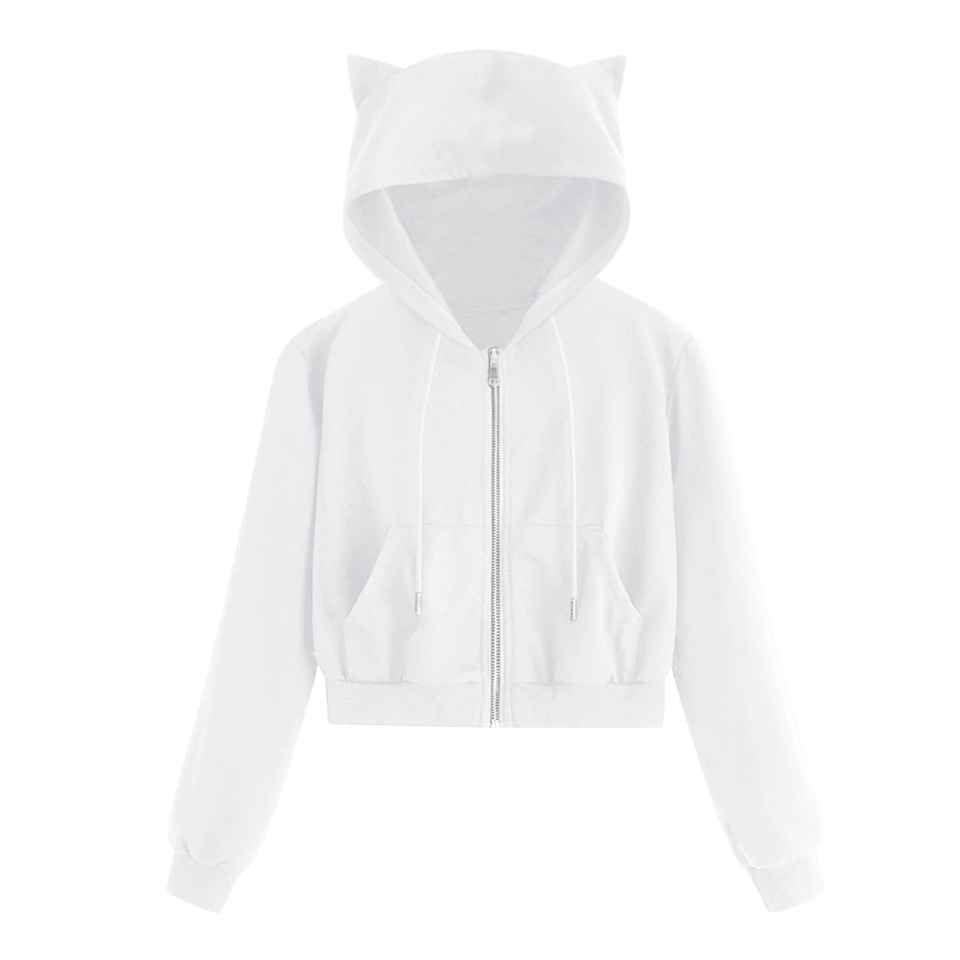 Customizable 100% Fleece Hoodie Cat Ear Hooded Sweatshirt Pocket Zipper Crop Top Long Sleeves OEM Embroidered Solid Hoodies