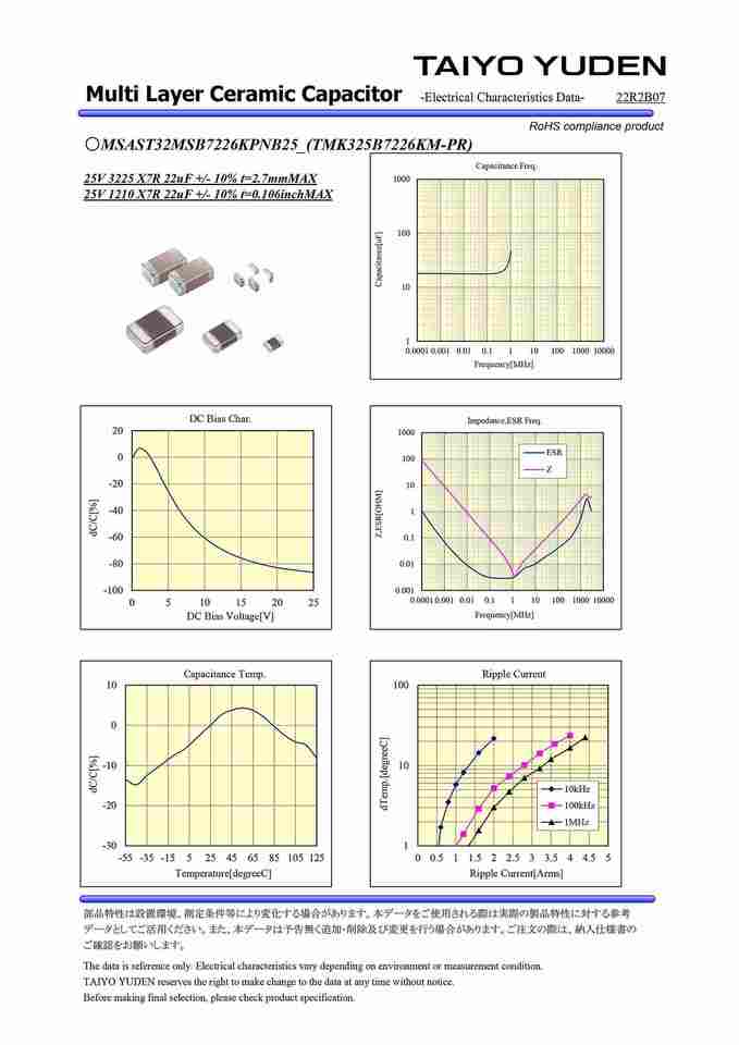 SMT 1210/3225 X7R 25V 22UF ± 10% 1K /rลักษณะ