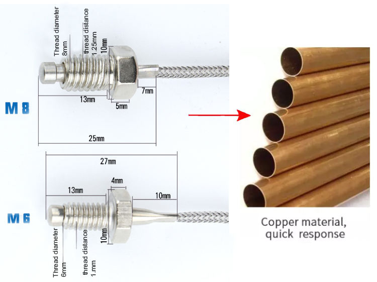 Product name:thread M8 screw high temperature sensor thermocouple type k m6