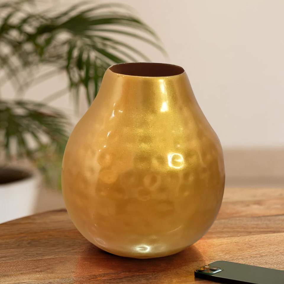 แจกันเหล็กโลหะคลาสสิกค้อนกลมตกแต่งบ้านผลงานชิ้นเอกของตกแต่งบ้านแบบพรีเมี่ยมสำหรับห้องนั่งเล่น