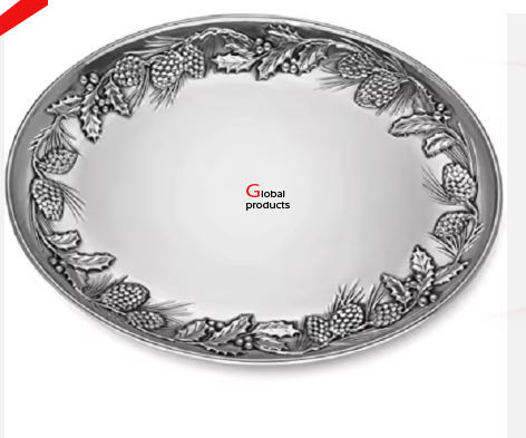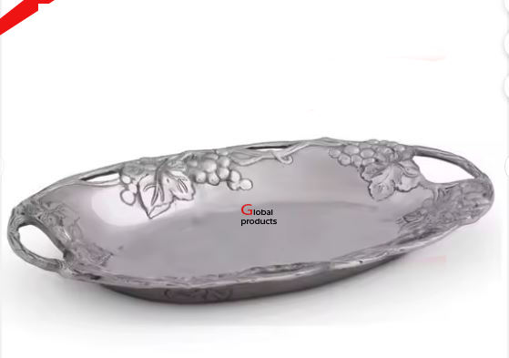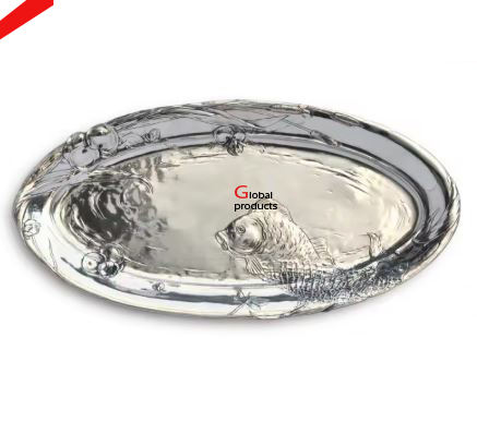 ถาดโลหะทรงรีสำหรับร้านอาหารโรงแรมและบาร์ดีไซน์แบบคลาสสิกทำจากโลหะสีเงิน
