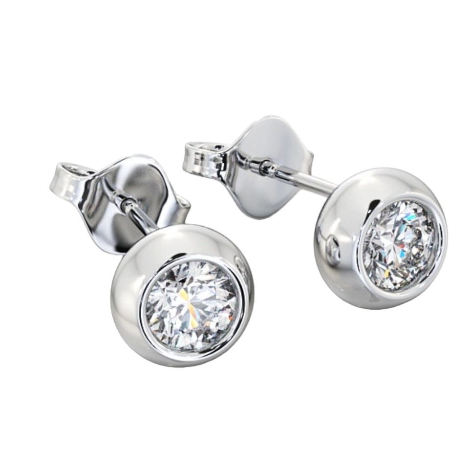 ต่างหูเพชรทรงกลมแบบคลาสสิก ประดับเพชรแล็บโกรว์ทรงกลม ตัวเรือนชุบทองคำขาว ได้รับการรับรองจาก IGI