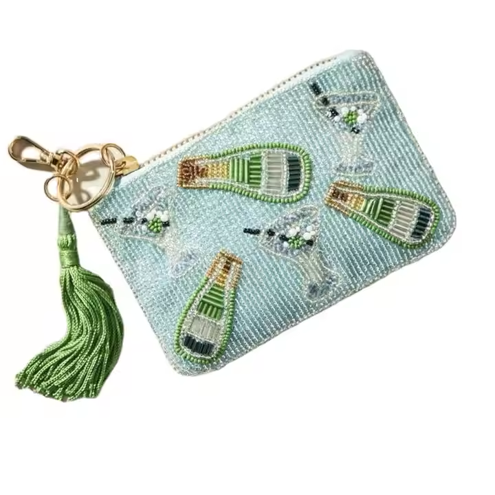 กระเป๋าใส่เหรียญนำเข้า ดีไซน์ลูกปัดปักลายซิป ใช้สำหรับผู้หญิงและเด็กผู้หญิง
