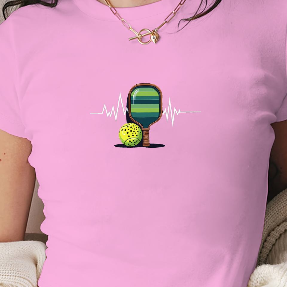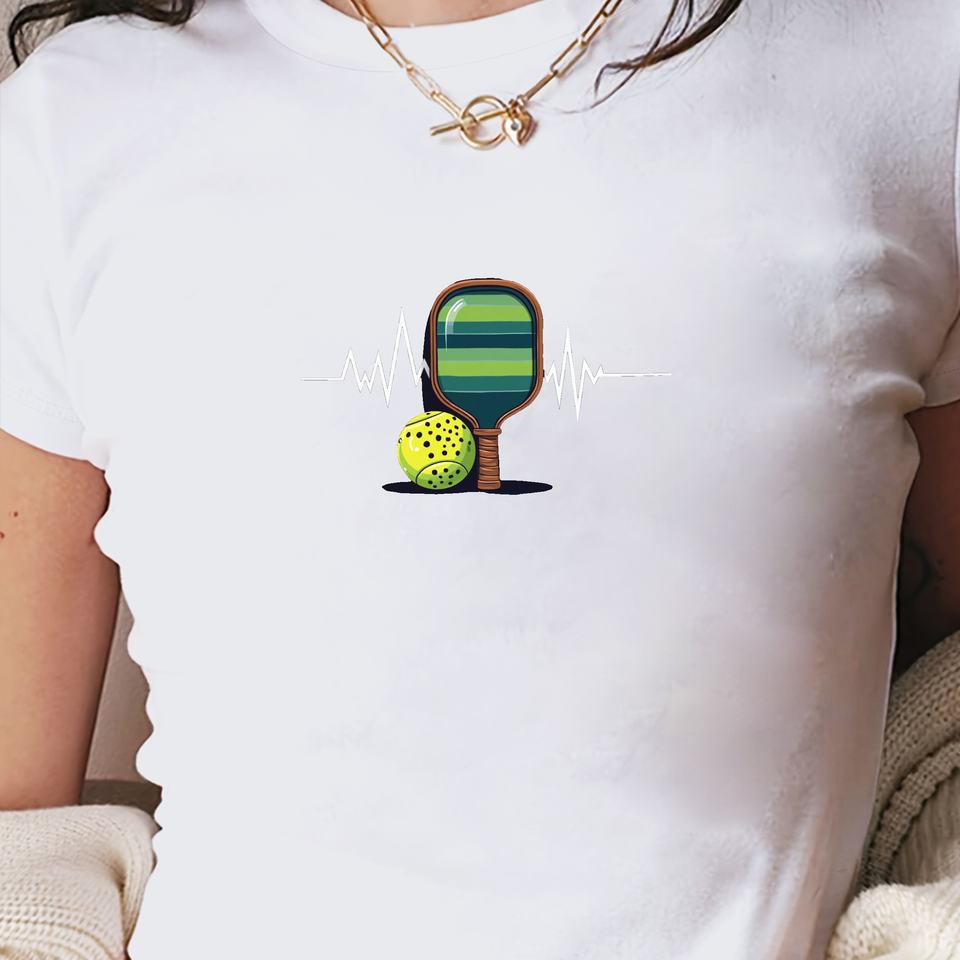 เสื้อยืดสั้นผู้หญิงหลากสีลายไม้พายและลูกบอล
