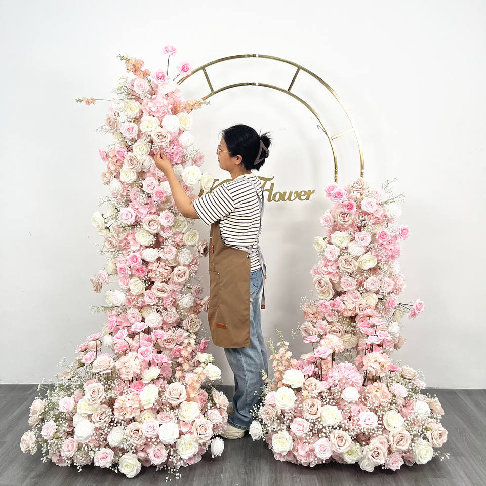 ของตกแต่งพื้นหลังซุ้มแต่งงานเทียมที่มีสีสันโรแมนติก