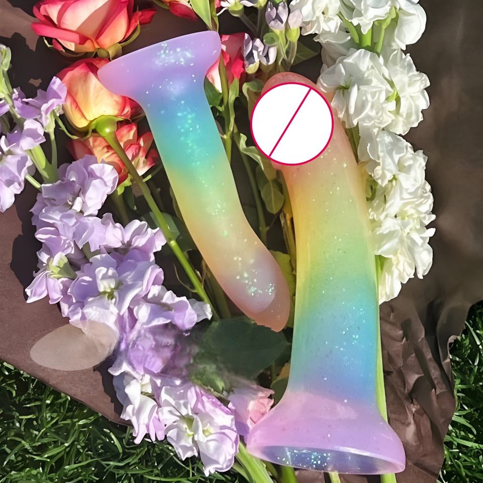 ดิ๊กโด้ซิลิโคนหลากสีขนาดใหญ่สำหรับผู้หญิง ดิลโด้ซิลิโคนเหลวแบบแฟนตาซีสำหรับผู้หญิง สายรัดแบบยาวสำหรับผู้ชาย