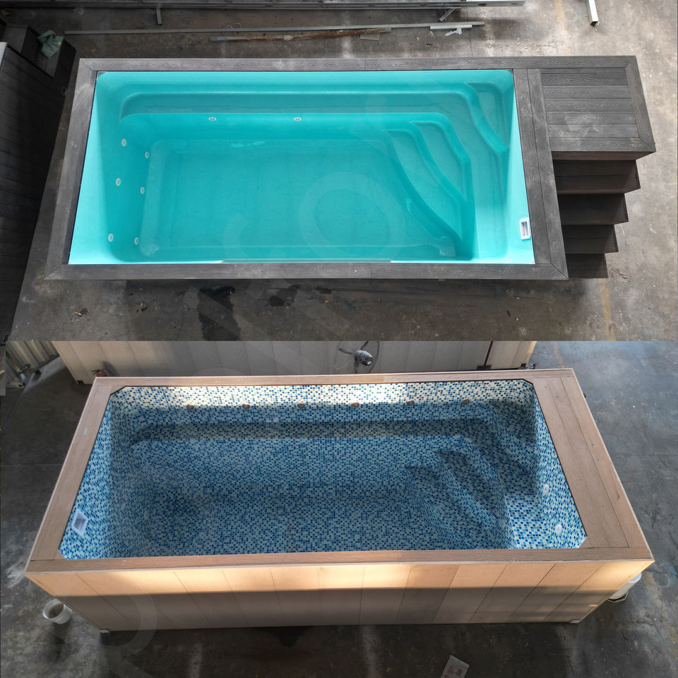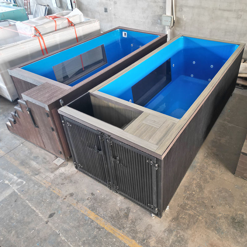 สระว่ายน้ำแบบตู้คอนเทนเนอร์ขนาด 40 ฟุต สระว่ายน้ำเหนือพื้นดิน โครงเหล็ก อ่างสปา อ่างน้ำร้อนจากุซซี่ สระว่ายน้ำ