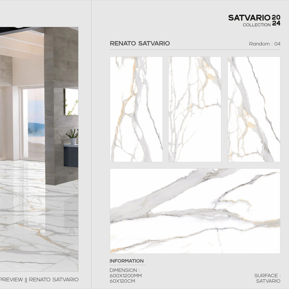 กระเบื้องพอร์ซเลนร่วมสมัยผิวสัมผัสซาตวาริโอ ขนาด 60x120 ซม. 600x1200 มม. 24x48 นิ้ว สำหรับตกแต่งภายในหรูหรา
