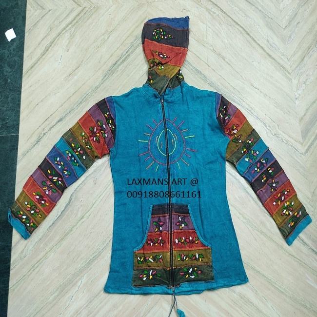 แจ็กเก็ตมีฮู้ดสำหรับฤดูหนาวจากอินเดียแจ็คเก็ตผ้าฝ้ายย้อมสีมีซิปเสื้อแจ็คเก็ตเนพาลีฤดูหนาว