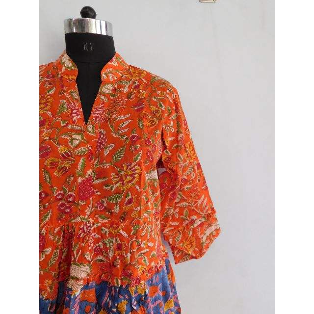 ชุดเดรสผ้าคอตตอนของผู้หญิง,เสื้อคลุมจากนักออกแบบชุดชายหาดสั้นพิมพ์ลายบล็อกแฮนด์เมด