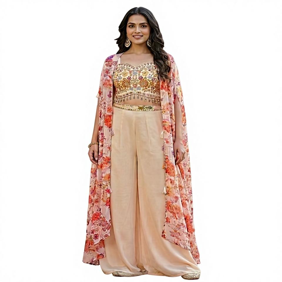 เสื้อแจ็กเก็ตภันฑานี ผ้าจอร์เจ็ตปักลาย