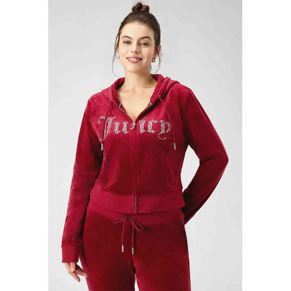 เสื้อฮู้ดครอปผ้าฟลีซปักคริสตัลผสมและโลโก้ประดับเพชรแบบไอคอนิก เสื้อตัวยาวลำลอง