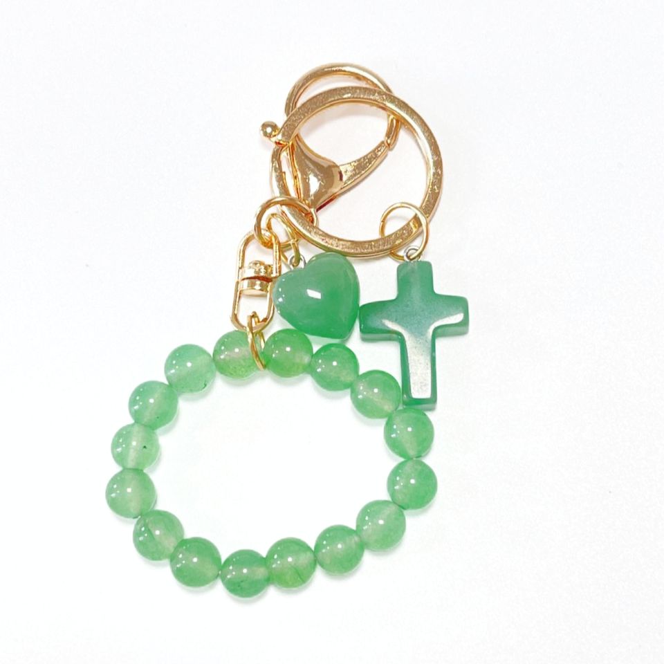 พวงกุญแจจี้หยกสีเขียวรูปไม้กางเขนออกแบบโลโก้ได้ตามต้องการ